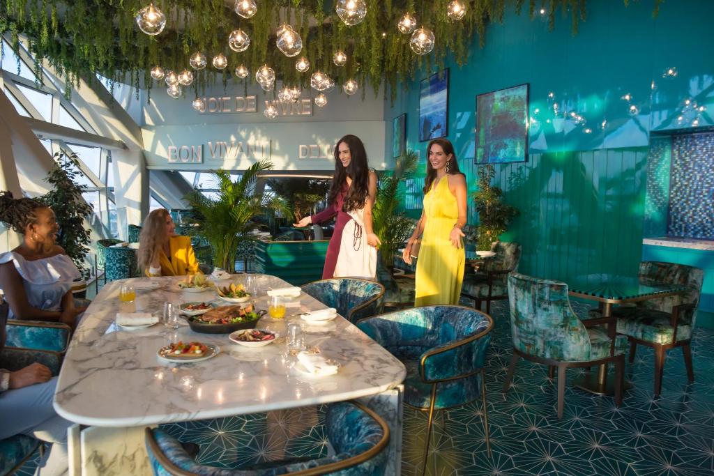 Oaspeții au la dispoziție 2 restaurante și baruri. Cyan, o braserie și lounge modern, situat la etajul 18, cu scaune în stil lounge și o zonă de bibliotecă, oferă ceaiuri premium, cafea, produse de patiserie proaspete și gustări. De asemenea, oaspeții se pot bucura de băuturi la Rayana Latin Tapas Bar sau la Barul 18 Degrees. Spa-ul este situat la etajul 19 și este singurul din Abu Dhabi cu vedere la oraș. Acesta are o piscină suspendată în aer liber, un centru de fitness și o cadă cu hidromasaj.