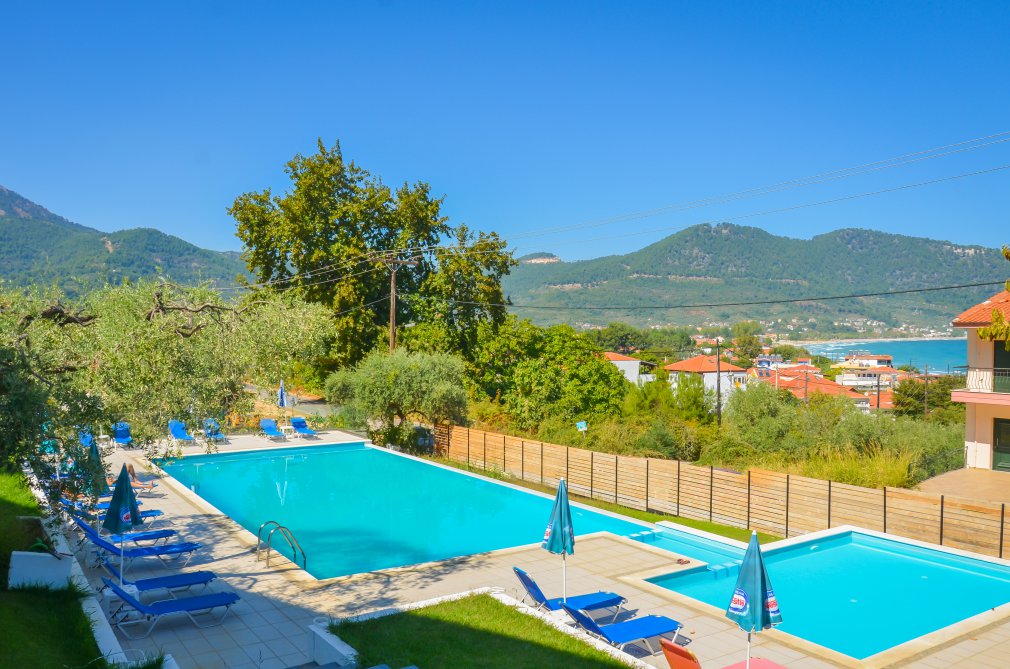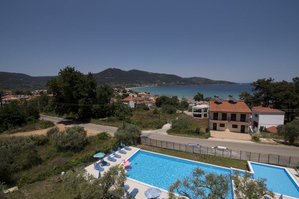 Hotelul este situat in statiunea Skala Potamia, o statiune foarte populara in Thassos. In imediata apropiere se afla nenumarate taverne, magazine, baruri. Plaja este premiata Blue Flag si este foarte bine organizata. Distanta pana la plata este de aproximativ 300m.