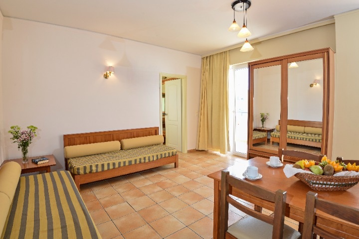 Aer condiționat, wifi, tv prin satelit, paturi duble / paturi twin, canapele în toate garsonierele si apartamentele, telefon cu linie directa, frigider, chicineta complet utilata(in toate studiourile, apartamentele studio si apartamentele de familie), baie cu cada sau dus, uscator de par, balcon sau veranda.