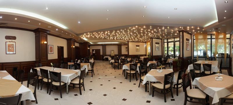 bufet in restaurantul principal - o varietate de preparate calde si reci, o varietate de produse lactate, fructe de sezon, o varietate bogata de preparate din bucataria bulgara si internationala cu bauturi racoritoare incluse, vin bulgaresc si bere bulgareasca.