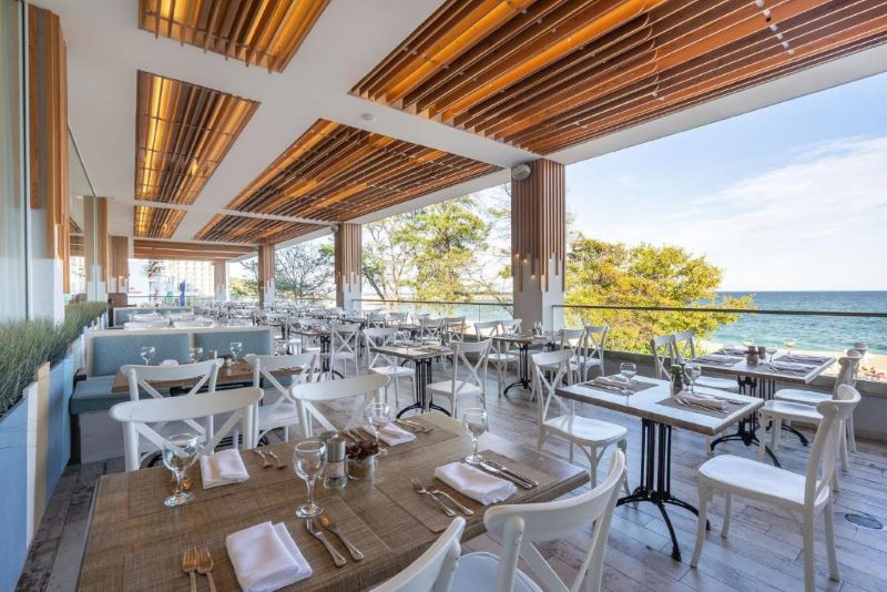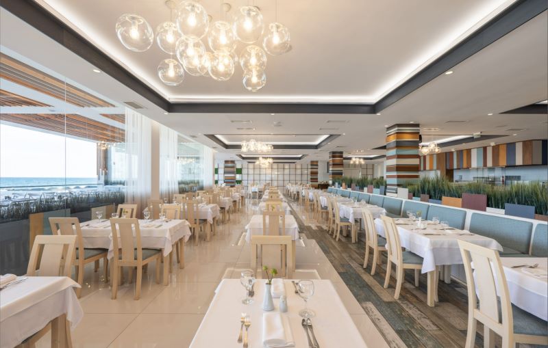 Hotelul oferă o gamă variată de facilități și opțiuni culinare pentru toate gusturile, inclusiv un restaurant principal cu terasă la soare și vedere la mare, un restaurant à la carte italian, un restaurant a-la-carte specializat în opțiuni sănătoase pentru detoxifiere, un restaurant cu gustări și un restaurant a-la-carte pe plajă. Oaspeții se pot relaxa la patiserie, barul din hol, barul de pe plajă, sky barul și barul de pe acoperișul de lângă piscina Infinity. În plus, hotelul oferă un mini club pe plajă pentru copii și o sală de conferințe cu vedere panoramică la mare pentru evenimente, alături de facilități precum etajul acvatic, circuitul Spa, etajul Vitality, o sală de fitness cu vedere la mare, o piscină infinită cu terasă la soare și una interioară cu acoperiș de sticlă și perete detasabil. De asemenea, există o mini piscină pentru copii cu tobogane și diverse activități sportive, cum ar fi gimnastica, zumba, boccia, darts, aerobic și volei pe plajă.
