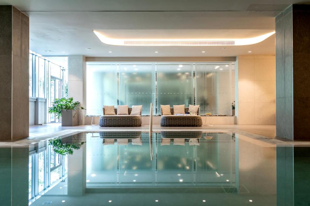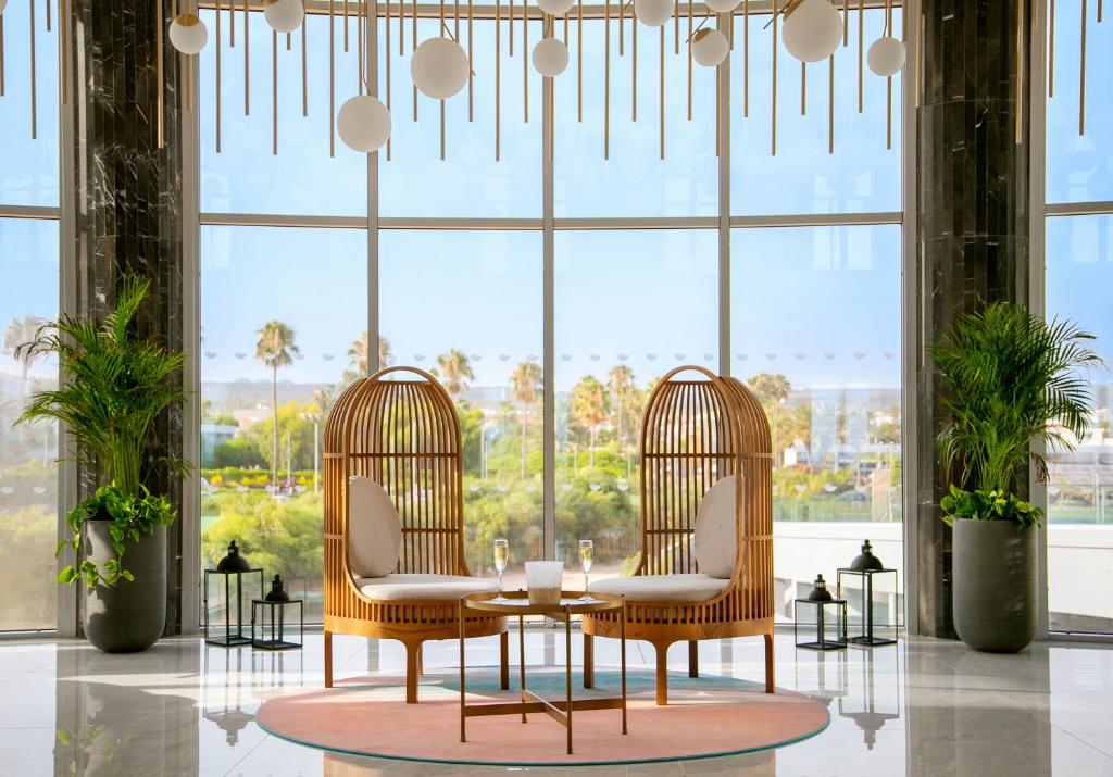 Oferind cazare de 5 stele in mijlocul unei grădini tropicale, 1 piscină mare in aer liber, 1 piscină pentru copii și 1 piscină interioară incălzită, NissiBlu Beach Resort se află pe renumita plajă cu nisip Nissi, cu vedere la Marea Mediterană.
