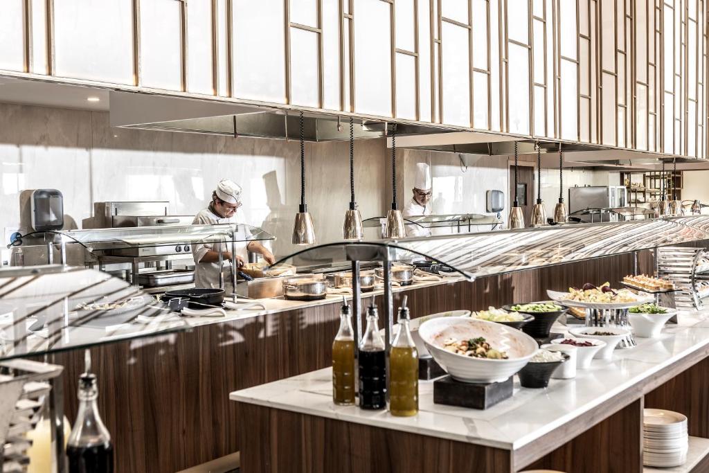La masa de cină, restaurantul elegant servește mancăruri americane, italiene și internaționale. Cele 3 baruri, amplasate langă piscină, in hol și langă restaurant, oferă cocktail-uri exotice, inghețată și gustări. Facilitățile de agrement oferite de proprietate includ piscină interioară, incălzită, cu apă sărată. Oaspeții pot să se antreneze la sala de sport echipată complet.
