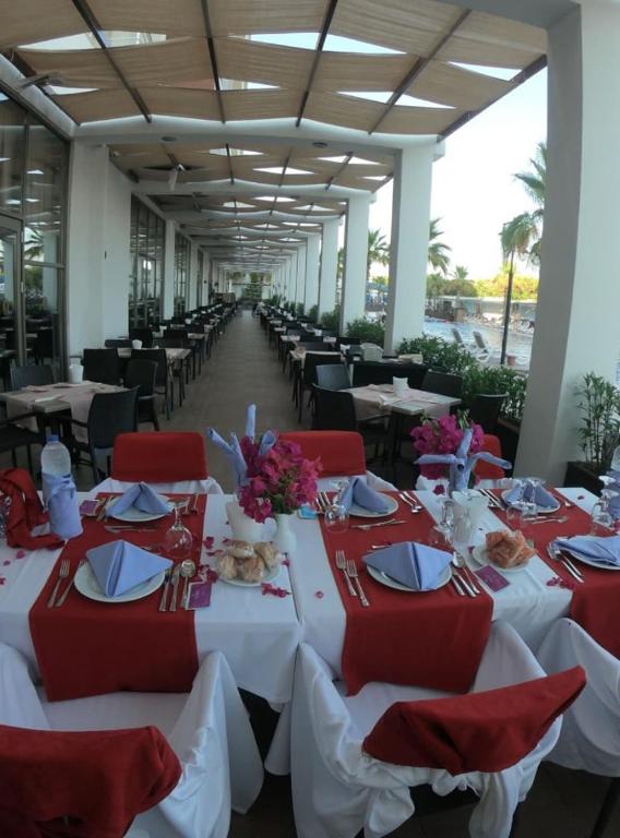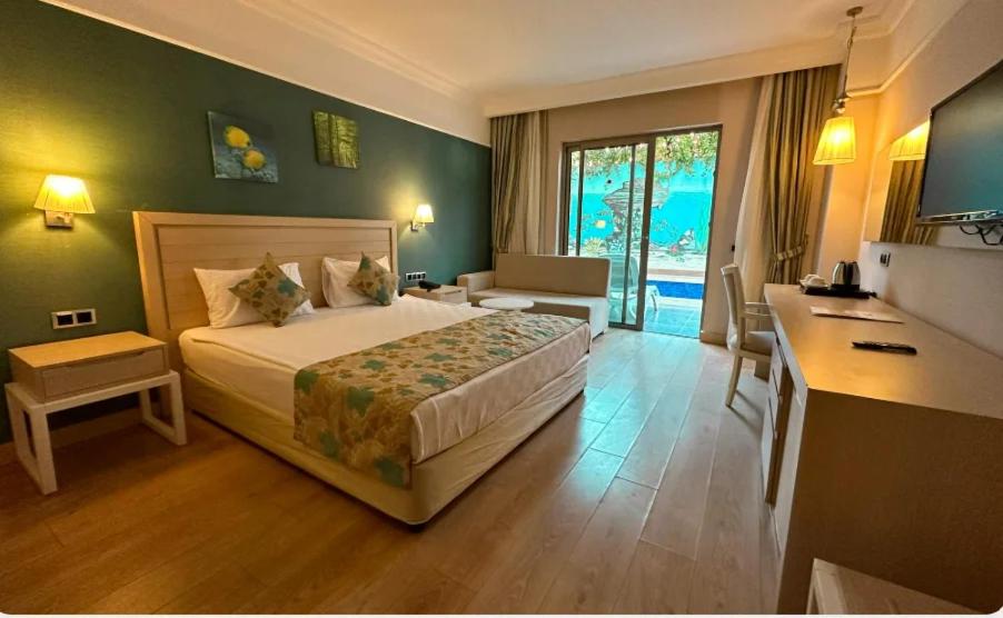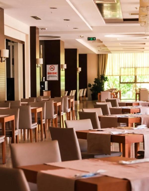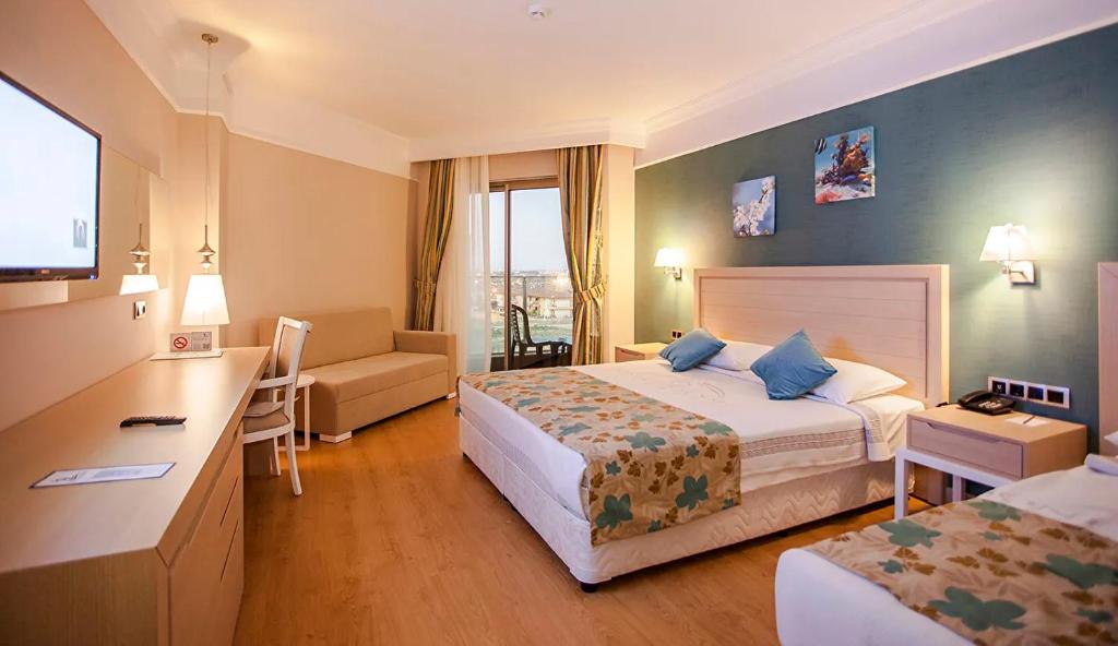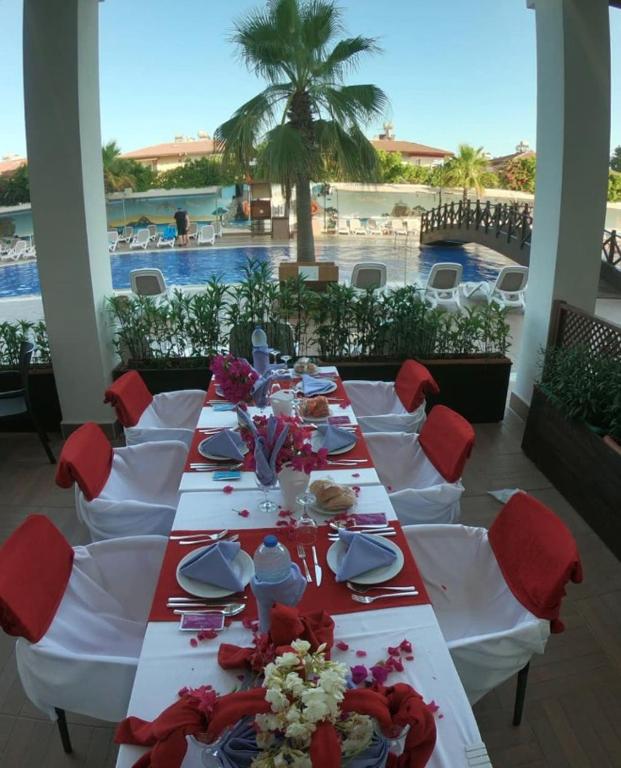 Complexul dispune de două piscine exterioare, dintre care una special amenajată pentru copii, și un restaurant principal unde se servesc preparate din bucătăria turcească și internațională. Camerele sunt dotate cu aer condiționat, TV prin satelit și balcon privat.