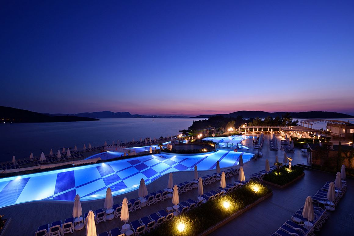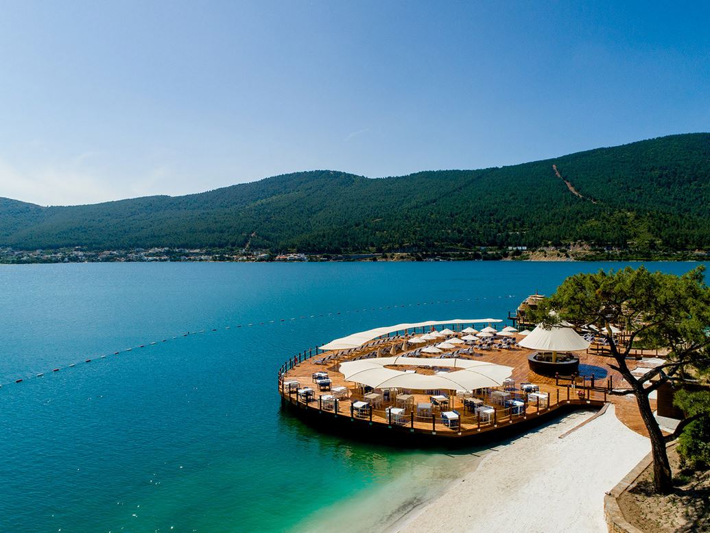 Este situat pe plaja, la 1 km de Turgutreis, la 18 km de Bodrum, la 50km de aeroport, si la 65 de km de orasul Antic Heraklia.