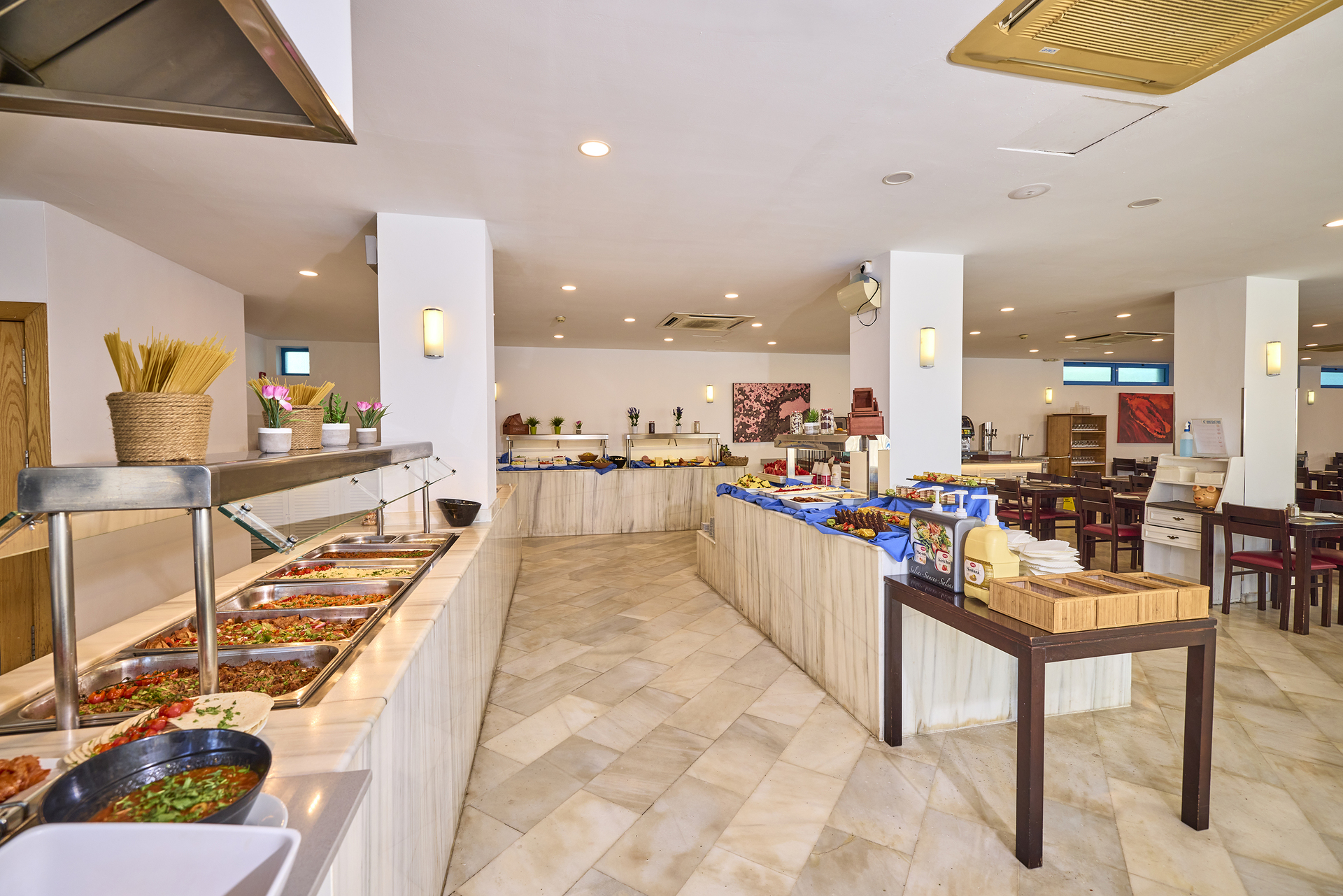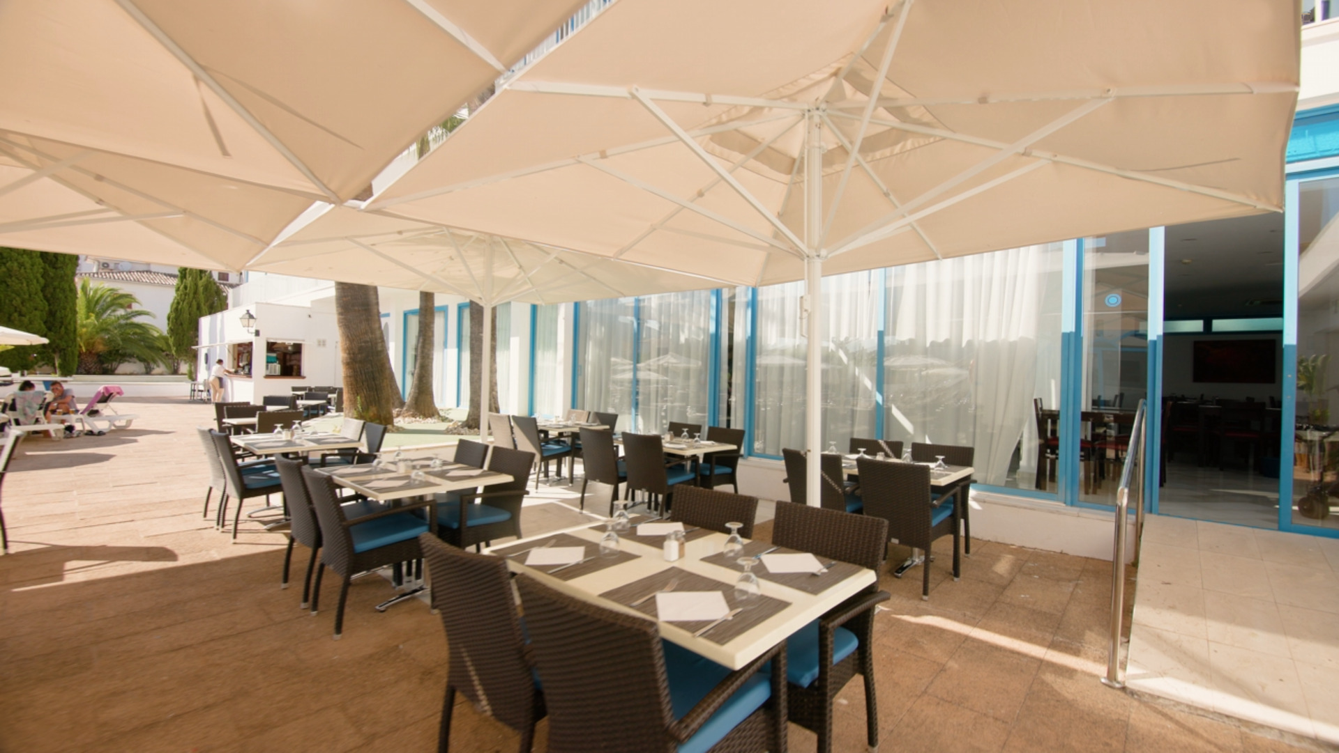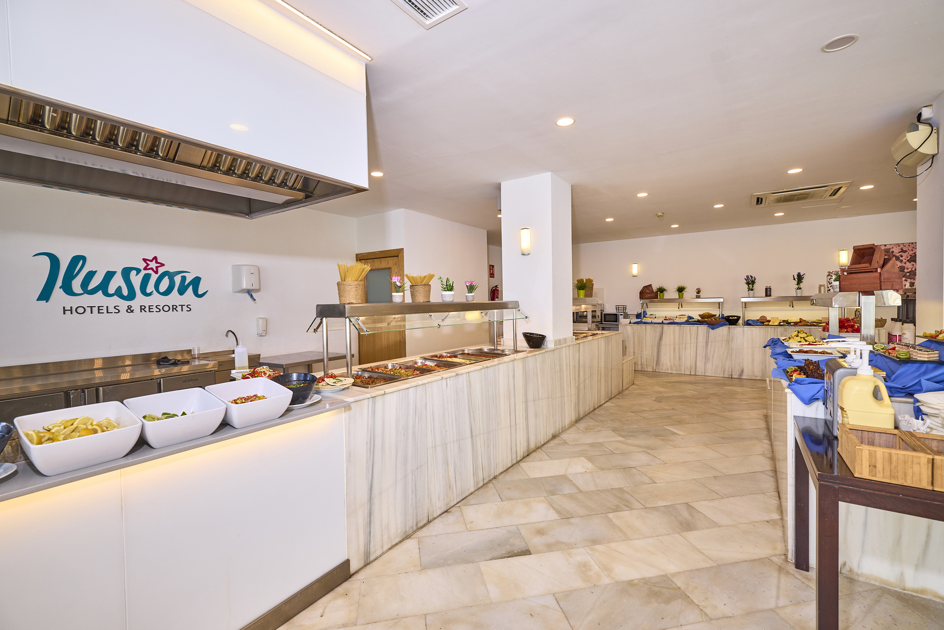 Around 300 m from a beach lies the hotel Ilusion Vista Blava. The air-conditioned hotel is equipped with a lobby bar, 2 lifts as well as showers and changing rooms. Furthermore, you can relax outdoors on the sun terrace. You can store your luggage in the hotel's storage room. There is also a laundry service available at an additional cost to customers. Catering As catering services the hotel offers all-inclusive. Breakfast is offered continental or from the buffet. Lunch and dinner are also served from the buffet. All Inclusive Light includes local alcoholic beverages. Your physical well-being is catered for by a buffet restaurant with terrace (vegetarian dishes). Appropriate clothing is required for lunch and dinner. Distances