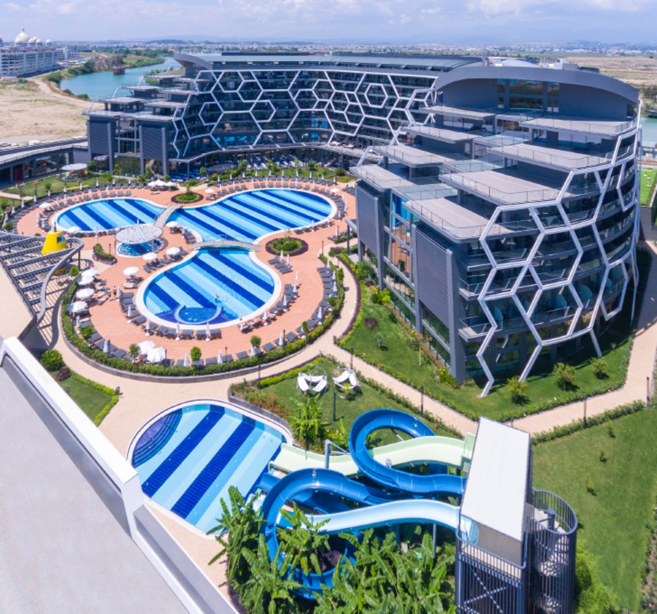 Hotelul oferă 1 restaurant principal, 3 restaurante a la carte (mediteranean, Grill, asiatic), 4 baruri, Wi-Fi gratuit pe întreaga proprietate a hotelului, o piscină exterioară cu pool snack și una interioară. Hotelul dispune de un centru SPA și Wellness, pool snack, patiserie, centru fitness și amfiteatru. Hotelul are o zonă de plajă privată cu nisip și pietriș, cu prosoape, șezlonguri și umbrele gratuite.