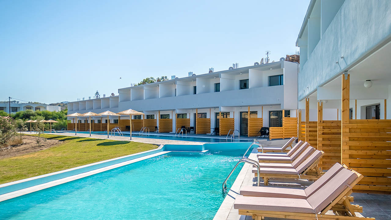 Hotelul este situat intr-o zona linistita, la 50 m de plaja si in apropierea centrului de divertisment din Faliraki. Atmosfera intima si designul modern al hotelului face din acesta o locatie buna, care ofera un confort ridicat pentru toti oaspetii.