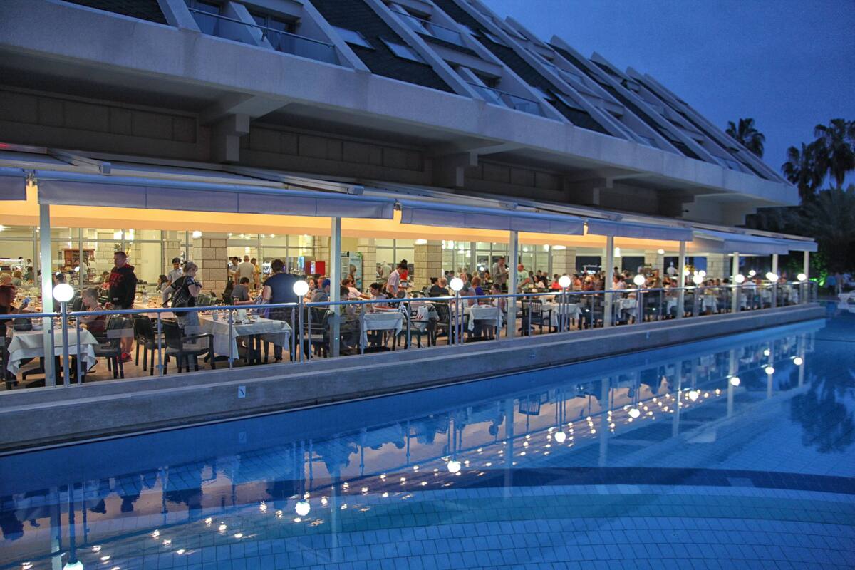 Un total de 475 de camere, 195 de camere in cladirea principala si 280 de camere in partea de club din spatele cladirii principale, ambele parti sunt legate printr-un pod, hol de intrare cu receptie, restaurant principal, 3 restaurante A la Carte (cu rezervare), snack bar, bar la piscina, disco bar, 2 piscine exterioare, piscina pentru copii, parc acvatic, sezlonguri gratuite, umbrele si prosoape langa piscina, galerie comerciala (piata, bijuterii, butic, marochinarie, suveniruri), inchirieri auto (pentru o taxa), servicii de medic sau asistenta (contra cost), servicii de spalatorie (contra cost), servicii de babysitting (contra cost), servicii de coafor (contra cost).