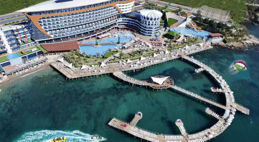 Restaurant principal, 6 restaurante a la carte (turcesc, italienesc, chinezesc, pescaresc, rusesc, Tappanyaki), 8 baruri, piscina exterioara , piscina pentru copii , aquapark, piscina interioara, sauna, baie turceasca, baie cu aburi, centru fitness, mini club, programe de animatie, discoteca, spectacole in timpul serii, muzica live, cinema, discoteca si cinema pentru copii, tenis de masa, darts.
