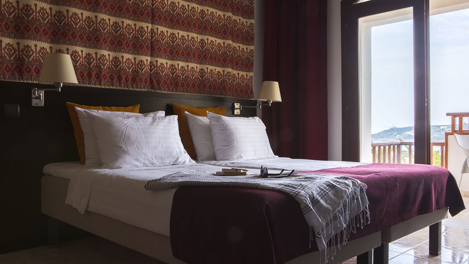 Vederi spectaculoase la mare, piscina mare, situat central, in inima statiunii Almyrida, WiFi, restaurant, bar, parcare, camere pentru nefumatori.