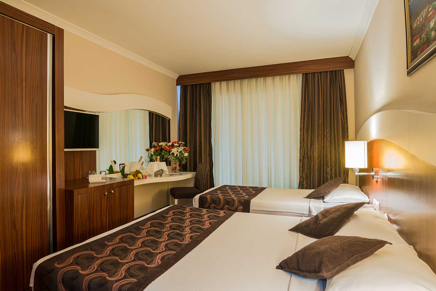 Camerele sunt dotate cu dus, foen, aer conditionat individual, televizor, telefon, mini-bar (apa si bauturile racoritoare - suplimenteaza zilnic, gratuit), seif (contra cost), pardoseala (laminat), balcon, room service (24 h, contra cost).